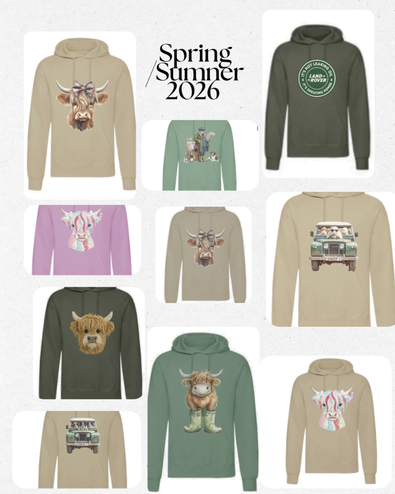 We work with an exclusive artist who creates our original  artwork, which we carefully print onto high-quality garments. Every piece reflects authentic country living — honest, hardworking, and full of character.